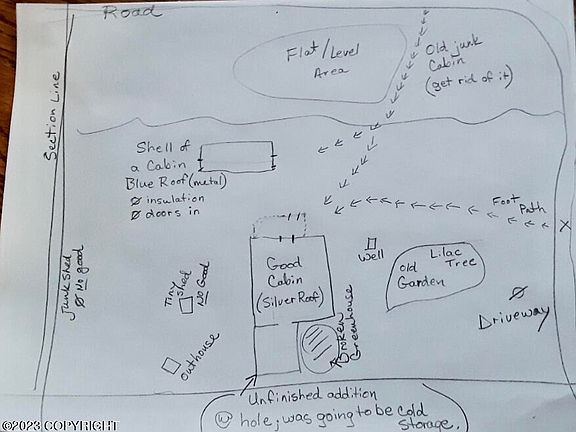Completely wonderful property Mostly level ground, borders state land, great sunlight, perfect spot to create your own off grid homestead or private get away! Almost five acres away from the city. Cabin will need a lot of work. Surrounding buildings... we don't know condition but most likely can be burned or removed. Was a green house platform at one time. Old outhouse. Snow is melting to show mor