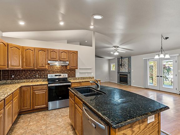 Priced to Sell! Home has two suits!! This spacious and beautifully maintained 4-bedroom, 3-bath home offers comfort, versatility, and plenty of extras. The inviting open-concept layout features a stylish kitchen with granite countertops, stainless steel appliances, and a seamless flow into the dining area—perfect for everyday living or entertaining. Step outside to the expansive outdoor entertainment patio, where you can relax or host gatherings year-round. The patio spans one-third of the backyard and offers both covered and open spaces to enjoy sun or shade. Inside, the home is warm and welcoming with luxury vinyl plank flooring, and a cozy gas fireplace in the living room. Thoughtful details throughout include wide hallways and doorways, plus no- or low-step showers for added accessibility. The floor plan includes two master suites, offering privacy and flexibility for guests or multi-generational living, as well as a bonus room ideal for a home office, den, or creative space. Outside, you’ll appreciate the fully fenced backyard with privacy fencing, RV parking, and two storage options—a convenient garden shed plus a large workshop with electricity, perfect for projects or extra storage. This home truly has it all—style, comfort, and functionality—all at a price that’s ready to move!