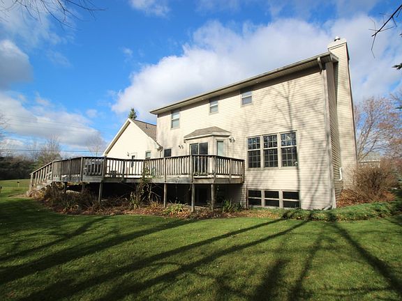 Excellent location in the King of Arms Subdivision. This 2 story home on a beautiful, wooded ravine lot features a large foyer, newer laminate/hardwood on main level, formal office or dining room with French doors and newer flooring. The kitchen/dinette has a bump out and patio doors to the party size deck that overlooks the partially wooded backyard. The spacious great room w/gas fireplace is perfect for entertaining. Master suite with cathedral ceilings, private bath and walk in closet. A secondary door is ideal to the desk from the 1st floor laundry room. Extra large 2.5 stall attached garage with a floor drain. The basement is unfinished but boasts exposed windows and stub ins for a bath so you can finish it to your liking. Newer roof, windows, furnace, and water heater and more! Call today for more information or a personal appointment.