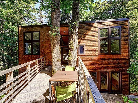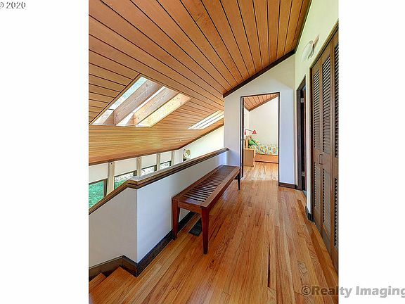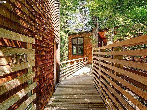 Surrounded by a stunning greenery border,this architectural gem was masterfully designed by local architect,Bing Sheldon.Soaring vertical grain fir ceilings,custom made windows & Beechwood built-ins.Open kitchen w/quartz countertops & high end SS appl.French doors from dining area lead to an expansive IPE deck,an entertainer's dream!Master suite truly feels like a retreat.Peace,tranquility & streaming light throughout.Guest house.Tucked at the end of the street with connector to Wildwood Trail! [Home Energy Score = 4. HES Report at https://rpt.greenbuildingregistry.com/hes/OR10185717]