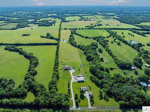 Situated on a sprawling 21-acre estate, this property offers not one, but two charming homes along with a massive Morton Building, making it a true haven for those seeking space and versatility. The newer home, constructed in 2014, exudes modern elegance with its wood floors and granite countertops. The large kitchen boasts an eat-in island, custom cabinets, walk-in pantry and is perfect for hosting gatherings or preparing delicious meals. The open floor plan living and dining room is inviting with windows that let in plenty of natural light, while the three generously sized bedrooms provide ample space for relaxation. The main bedroom features its own luxurious bathroom, offering a private retreat within the home. A spacious laundry room adds convenience and additional cabinets with storage space. The full basement, currently utilized as a recreation room, presents endless possibilities for customization and includes an additional bedroom, bathroom, abundant storage space, and even a secure safe room for added security. In the back of the home, you are greeted by a tiered deck overlooking an inviting above ground pool. The deck is the perfect spot for lounging in the sun or hosting barbecues. Adjacent to the main residence is a cozy three-bedroom, one-and-a-half-bathroom home with an open floor plan. Currently serving as a rental property, this space could easily be repurposed as a mother-in-law suite or additional living quarters, providing flexibility and potential for multi-generational living. Completing this remarkable property is the expansive, finished Morton Building, featuring overhead doors, a workshop area, and a separate apartment complete with a living room, kitchen, bedroom, and bathroom. This versatile space offers a myriad of uses, whether for housing guests, generating rental income, or pursuing creative projects. Outside you will find a lush countryside of natural beauty with a tranquil pond that glistens in the sunlight, providing a serene spot for fishing or simply relaxing by the water's edge. A maintained trail winds its way through the property, perfect for exploring on foot or by four-wheeler. The trail meanders through wooded areas, open fields, and along the edge of the pond, offering a variety of scenic views and wildlife sightings along the way. The property also features an established garden, vibrant flowers, lush greenery and solar panels for energy savings. Overall, this property offers a peaceful retreat from the hustle and bustle of everyday life, with its natural beauty, outdoor amenities, and serene surroundings making it the perfect place to relax and unwind. A rare opportunity to own two homes and a spacious Morton Building on a sprawling 21-acre parcel of land. Don't miss your chance to make this exceptional property yours today.