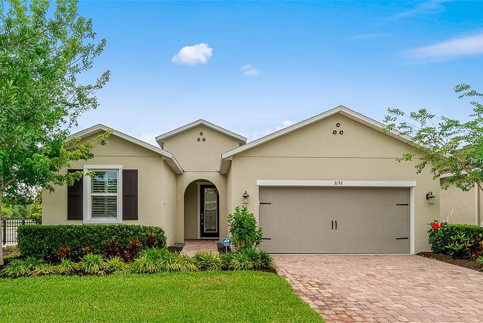 BEAUTIFUL MOVE IN READY HOME! GREAT LOCATION!! 1880 SQ FT 3 Bedroom plus office/den, 2 bath, 2 car garage home with fenced in backyard in a gated community. Oversized kitchen with granite countertops, custom Espresso cabinets with crown molding and granite island. Stainless steel range, dishwasher, microwave and side by side fridge. Washer and dryer also included. Spacious open great room plan with tile flooring in entire home except the 3 bedrooms. Split bedroom plan with large master bedroom and large walk-in closet. Master bath separate shower and soaking tub and double sink vanity with granite counter tops. The exterior has a brick paver driveway/walkway, automated sprinkler system w/ reclaimed water and mature landscaping. Just minutes from the Tampa Premium Outlet Mall, Wiregrass Mall and I75