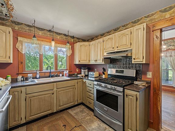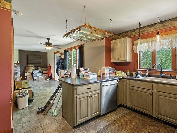 Charming Fixer-Upper on Nearly 6 Acres with Massive Pole Barn! Don't miss this rare opportunity to own a spacious 4-bedroom, 2-bath home nestled on 5.91 acres of serene countryside! With 2,032 sq ft of living space, this 1.5-story home offers incredible potential to make it your own. The main level features a large primary suite with a walk-in closet, two additional bedrooms, full bath, a spacious living room with a stone fireplace, separate family and dining rooms, plus a dedicated laundry room with hookups. The kitchen includes a breakfast bar, perfect for casual dining or entertaining, and flows into the open dining area. Upstairs you'll find three more generously sized bedrooms, offering plenty of space for family, guests, or a home office. Enjoy peaceful outdoor living with a covered front porch and an open back deck, ideal for relaxing or watching the sunset. The property also boasts a massive 2,400 sq ft pole barn—perfect for storage, hobbies, or even a workshop. Other highlights include an unfinished basement offering additional storage or future expansion potential. This home is a fixer-upper, ready for your vision and updates to bring it back to its full charm. Private, peaceful, and packed with potential—this is country living at its best!