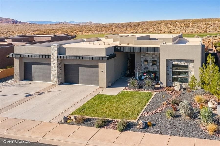 Stunning modern home in the Dunes at Sand Hollow Resort! Featured in the 2018 Southern Utah Parade of Homes, this home backs to the Sand Hollow golf course, with beautiful views of Pine Valley Mountain. Ideal for entertaining, smart home includes Sonos sound system, glass sliding wall that opens to patio, and an unbeatable backyard with a pool and built-in hot tub, outdoor kitchen/wet bar, and a