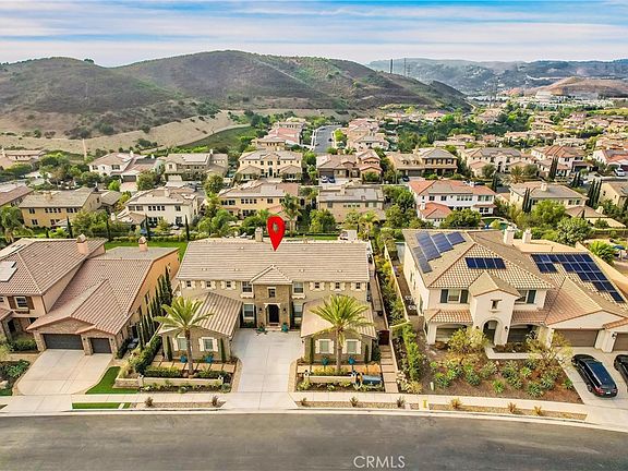 Presenting a shining star of Mirador with an exclusive location on a desirable single loaded street boasting a highly prized Plan 6 floorplan plus awe inspiring panoramic views of lush rolling hills, colorful sunsets, and snow-capped mountains. Experience luxurious living in this beautifully designed home with every comfort you could imagine and an entertainer’s dream backyard. The 5,000+ expansive floor plan is perfect for evolving modern lifestyles with space for work-from-home executives, In-Laws, and growing children to commune in peaceful harmony! The stately California Ranch inspired exterior and vibrant water conscious landscaping create a striking first impression. Pass through the new custom wrought iron front door into the formal foyer with a dramatic chandelier welcoming you into the home. To the left of the entry, double doors open to a handsome office space, and to the right you will find an elegant formal dining room redesigned to open the space, taking advantage of the gorgeous views, providing an ethereal dining experience. The main level has gorgeous new wide plank hardwood floors, upgraded decorative lighting throughout, and a light-filled Great Room blessed with a beautifully updated fireplace with natural wood mantle and a wall of French doors opening to the backyard creating an ideal open-concept, indoor-outdoor, living space. The exquisitely remodeled kitchen will take your breath away with professional grade gas range, sublime countertops, custom pendant lighting, elegant custom cabinetry and hardware, and an expansive center island with breakfast bar. Expand this amazing interior by opening the pocket doors to the prized Capistrano Room with romantic fireplace providing an exceptional gathering space. Travel through a short passageway to the “Game Room” with soaring 2 story ceilings, an abundance of natural light, a full wet bar, double doors leading to the sumptuous Home Theater, and French doors opening to the backyard. The master suite is a private retreat with stunning un-obstructed views, a cozy fireplace, and a lavish master bath with decadent soaking tub, a palatial step-in shower, dual vanities, and his & her walk-in closets. The resort-like backyard is a tranquil oasis with a breathtaking pebble tec black glass & abalone saltwater pool with infinity edge hot tub, fire pit seating area, and a generous outdoor kitchen with pizza oven and built-in BBQ for entertaining loved ones while enjoying the peaceful views.