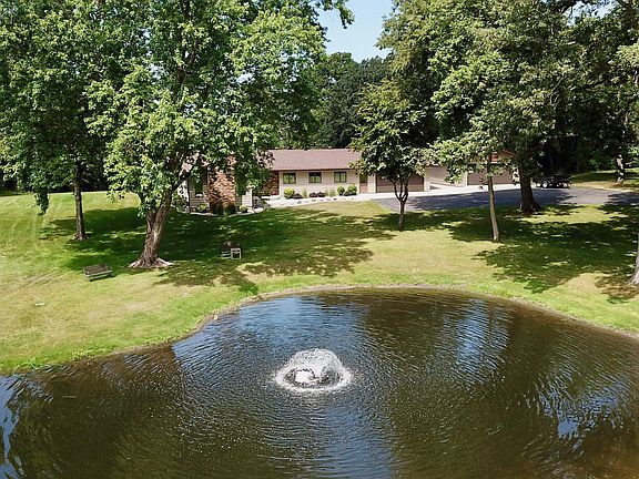 Your private haven awaits – a meticulously cared-for property where you can immerse yourself in nature's beauty and relish in breathtaking views. This slab on grade, three bedroom home, has a great open concept floor plan with plenty of storage room. The expansive 2.3 acre property boasts a picturesque pond with a fountain in the front yard. You'll also love all the extra space of the attached two stall garage and the bonus two stall detached garage! Don't miss the opportunity to make this lakeside retreat your own!