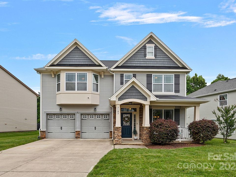 Loaded with upgrades, this meticulously maintained 2 story, 4 bed, 3 full bath home w/guest suite on main will not disappoint. The covered front porch has plenty of room for relaxing & all of your packages; 9-foot ceilings, hardwoods on main, crown & molding, updated kitchen (2022), open floor plan w/lots of space. Main floor you will find the dining room, gourmet kitchen w/breakfast nook, lots of counter space, large pantry, living room w/gas fireplace & guest suite w/full bath. 2 car garage w/ 240 volt 50 Amp outlet. Upstairs has the primary bedroom w/large bay window & spa-like bath including garden tub, separate shower, 2 sink vanity, & 2 walk-in closets; loft area, laundry room, & 2 more spacious bedrooms. Relax in the covered screen porch in the back w/oversized patio & firepit while the family plays in the fenced backyard w/trees along the back border; there is also a storage shed for all of your outdoor equipment needs. Community has sidewalks, playground, & club house w/pool