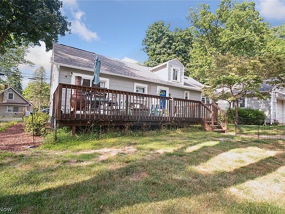 Situated with breathtaking views of Portage Lakes, this Akron home won't last long! Pulling up, you’ll notice the attached garage and the newly installed roof, complete with new gutters and leaf guards for enhanced durability and low maintenance. Inside, the house offers 4 beds, 1 bath, and 1,448 sq. feet. A variety of updates are installed throughout the house including 2 new windows (to be installed prior to closing), flooring, and paint. All appliances, including a washer and dryer, are included, making this home move-in ready. Upstairs one bedroom has a new skylight, and new carpet will be installed, while downstairs, the basement provides an ideal space for storing seasonal decor and bulk supplies. When warm weather approaches, soak up the sun on the wooden deck overlooking the wide, open yard.