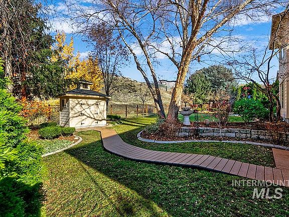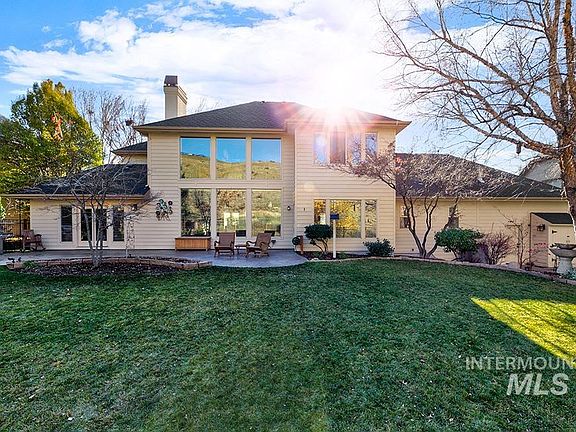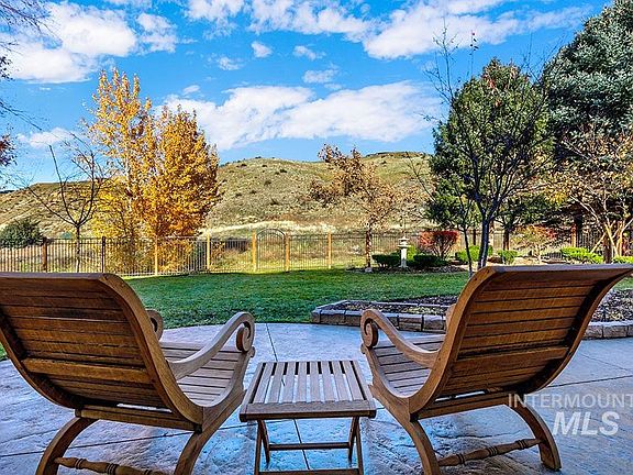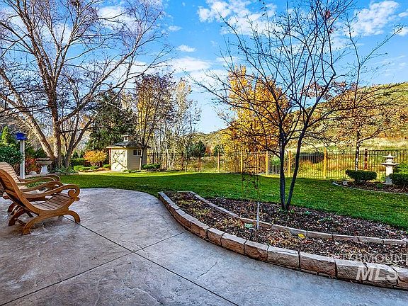 Premier location in Harris Ranch where the beauty of East Boise unfolds right from your backyard. One of only a handful of residences backing to a neighborhood trail, this premium nearly 1/3 acre site is a rare and delightful find within the established Spring Creek community. Built as a parade home, this grand aprx. 3340sf residence has since been lovingly maintained in impeccable condition by the original owners. The quality in the build is evident in the abundant use of solid materials, including beautiful alder cabinetry, solid-core interior and exterior doors, thick and ornate millwork, and exquisite fixtures including iron handles on all doors. Upon entry, two-story ceilings and a curved staircase make a magnificent first impression. Elegant spaces flank the foyer providing flexibility in use including a formal dining room, office, and library.
