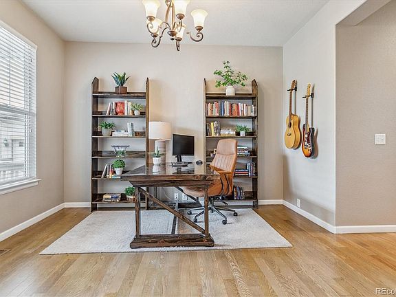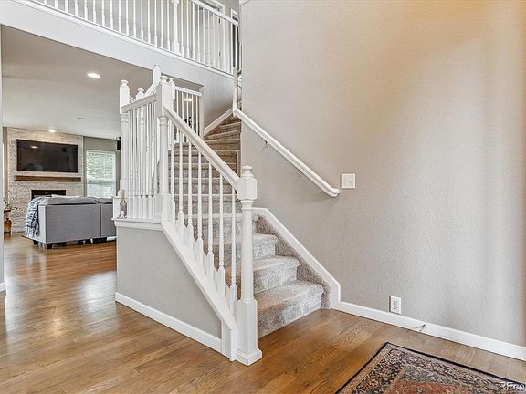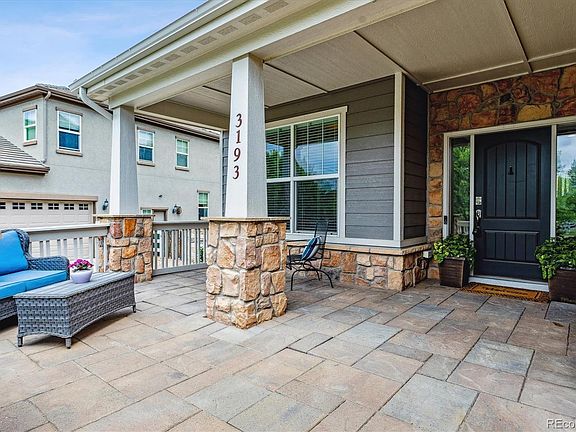 Welcome Home to this gorgeous, sun-filled two-story home in the popular Anthem Highlands! A beautiful front porch greets you walk up to the front door - perfect for enjoying your morning coffee! The 2-story entry opens up to a spacious great room with charming gas fireplace with stack-stone surround, and space for a formal dining table - perfect for entertaining! The large kitchen with eating space feature gleaming hardwood floors, abundant 42-inch and 36-cabinets with crown molding, Corian countertops, custom glass tile backsplash, all stainless steel appliances, and a HUGE multi-level island for addition seating and work space! Don't miss the main floor guest bedroom with 3/4 bath close by! Behind a rustic sliding barn door is a laundry/mud room with lots of hooks for coats, and a plank bench and shelves! Upstairs is a massive primary suite with coffered ceiling, walk-in closet, and a private 5-piece bath with glass shower, soaking tub, and double vanities! Three more sizeable bedrooms share a full hall bath with 2 sinks! The loft is perfect as an office or child's play area! The unfinished basement provides tons of storage space, or finish it and add over 1000 livable square feet! Hang out with friends and family on the oversized, stamped concrete patio out back, and your kids and pets will love the fenced backyard! The 3-car garage is tucked on the side of the home - 40-amp Tesla charger, refrigerator, freezer, shelving and bike racks are included! Extra special features include speakers in the great room, outdoor cameras, 50 gallon water heater, and a radon mitigation system is already in place! The Parkside Center is a 2 minute drive/15 minute walk away, and boasts a fantastic pool and water park, tennis courts, and fitness center! Plus there are miles of of walking trails throughout the neighborhood! Don't miss this incredible opportunity in Anthem Highlands!!