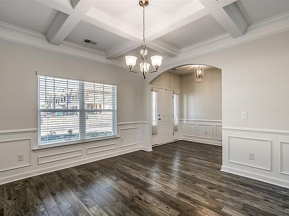 One-floor living. The foyer is graced with hardwood flooring and judges panels and wainscoting and that continues into the adjacent formal dining area with coffered ceiling. The great room/gathering area has kitchen complete with island prep center and another island for casual dining at the granite counter. There is even a pantry cabinet and lots of counter space for all your prep needs and Bluetooth music port for entertaining. The kitchen overlooks the large, vaulted great room with fireplace and door to the 10' x 16' covered + screened porch. The split bedroom plan has a guest wing with two bedrooms and a bath and the master bedroom en-suite is in the rear of the home with an atrium door to the covered porch. The master bath, with the 5' shower with tile walls and glass enclosure has both linen closet and large personal closet. Of course there is a large drawer stack, dual sinks, framed mirror and 2 transom windows for natural light. A natural gas community featuring Rinnai tank less hot water system, gas heat, and as an option gas cooking. Low HOA offers weekly lawn maintenance, semi-annual lawn fertilizer and mulch refresh, annual pressure wash, weekly trash pick up and bi-weekly recycle pick up, and resort style pool, cabana, clubhouse with gym, lending library, fully equipped kitchen, putting green, pickleball courts, boccie ball, and horseshoes.