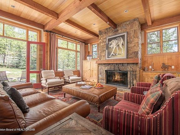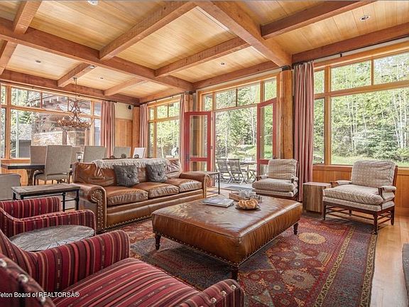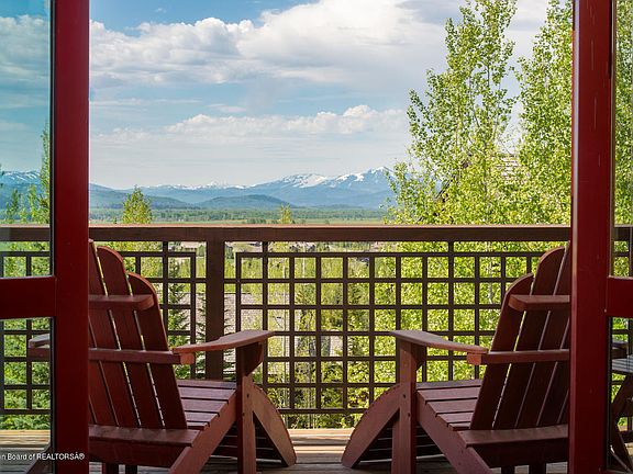 Located just uphill from the Four Seasons with ski-in, ski-out access via the Teewinot Run to a private slope, this lodge offers 4 large bedrooms, 4 full baths (1 master suite + 2 junior masters and a 4th set up as a bunk room) + half bath, spacious great room and gourmet kitchen with two dens, two private decks plus patio with a stream running past the hot tub. 4,251 square feet with 768 square foot garage. Excellent views up the mountain and out across the valley. These units may be rented short term and HOA plows and maintains yard for ease of ownership. The Jackson Hole Mountain Resort is adjacent to Grand Teton National Park making this an excellent summer property as well. Sold Furnished.