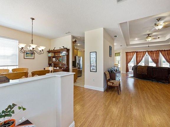- Interior Features: Ceiling Fans(s), High Ceiling(s), Master Bedroom Downstairs, Open Floorplan, Stone Counters, Crown Molding, Tray Ceiling(s), L Dining