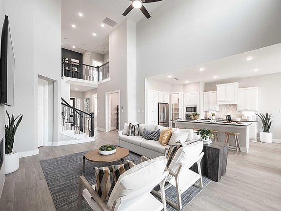 Verdin - Welcome home to this beautifully designed open-concept, two-story residence offering 4 bedrooms, 3 full baths, and a 2-car garage. The heart of the home features a light-filled kitchen that flows effortlessly into the casual dining area and spacious great room—perfect for everyday living and memorable gatherings. A private study and flexible bonus room provide ideal spaces for work, hobbies, or guests. Upstairs, enjoy a generously sized game room and an added media room, perfect for movie nights or relaxing weekends. A stunning curved staircase adds architectural charm, while the covered outdoor living area invites you to unwind and enjoy time outdoors. This home blends comfort, functionality, and style for modern living.