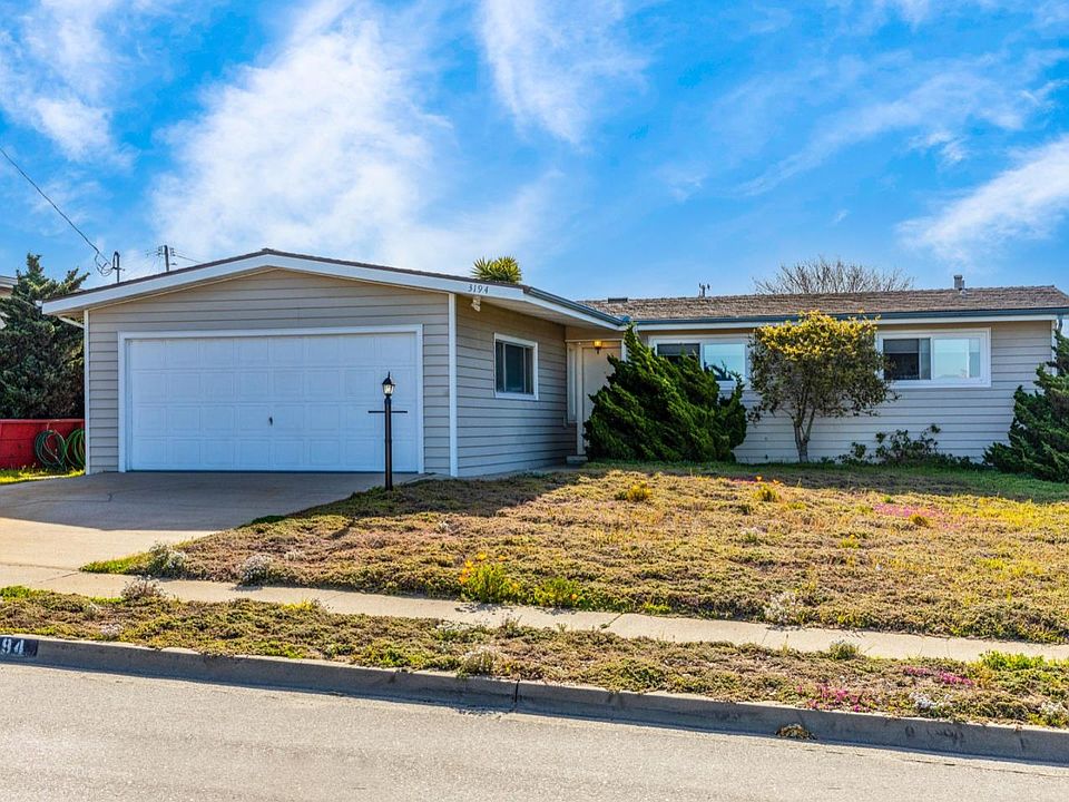 Airy clean ranch style 3-bedroom, 2 bath home with double attached garage and huge fenced backyard with artist studio/workshop. Warm hued stone tile floors recently added to kitchen, dining area, hallway, and both bathrooms. Living room opens into family room. Master bedroom has walk in closet and private bath with shower. Double pane windows provide great ventilation and light. Recently added custom made cellular shades throughout plus a whole house water purification system. Walk to stores, cycle to the beach and bike trail. Conveniently near CSUMB and other Monterey Bay locations.