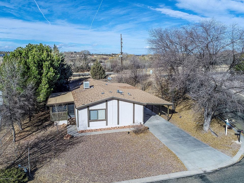 Excellent opportunity to own an affordable 4 bedroom, 2 bath home in Prescott! Split floor-plan with a comfortably sized master, three secondary bedrooms with secondary bath, family room and living room. Adjacent to the living room we have an additional enclosed 406 square feet featuring an office area and over-sized storage room. There is a wonderful screened-in and covered porch, perfect for entertaining. The backyard is fenced with lots of shade trees and includes a 16x16 workshop building that matches the home, plus another storage shed! The home has been renovated with new counters in both baths, the interior professionally painted and carpet was replaced in living and family rooms! All appliances included and no HOA!