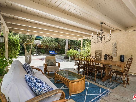 Canyon Calm, Modern Soul A Viewridge Estates Sanctuary. Tucked within Topanga's beloved Viewridge Estates, where canyon breezes mingle with the scent of sage and sun-warmed earth, this exquisitely remodeled four-bedroom, three-bath residence captures the rare alchemy of natural serenity and refined modern living. Here, 2,100 square feet of open, light-filled design unfold across a generous corner lot of nearly 10,000 square feet, a home that feels both intimate and expansive, grounded and elevated, casual yet undeniably sophisticated.Inside, soaring vaulted ceilings and cool porcelain tile floors create a rhythm of space and stillness, while a sleek gas fireplace anchors the living room in quiet elegance. The newly reimagined kitchen is the heart of the home, a culinary atelier outfitted with professional-grade appliances, custom cabinetry, and soft LED lighting that glows like twilight through the wide sunlit windows. It's a space that inspires gatherings, laughter, and the slow ritual of morning coffee in the breakfast nook as the canyon wakes around you.Two luxurious primary suites, each with a serene, spa-like atmosphere and elegantly updated baths, offer ultimate flexibility for multigenerational living, remote work, or gracious guest stays. Every detail feels intentional, from the recessed lighting that traces the architectural lines to the thoughtful updates beneath the surface: copper plumbing, an upgraded electrical panel, and energy-efficient fixtures that blend sustainability with style.Beyond the glass doors, a vast backyard stretches beneath the Topanga sky, a sanctuary for entertaining under the stars, cultivating a garden, or swinging gently beneath the trees as the day drifts away. Fruit trees nod in the breeze, and there's ample room for play, for parking, for life, all framed by the soft silhouette of canyon ridges. The spacious carport can serve as a relaxing space, as well. With RV parking, a two-car carport, and EV charging already in place, the property balances rustic charm with modern readiness.Location, too, tells its own story: a mere ten minutes to the culture and convenience of Woodland Hills and Calabasas, twenty minutes to the wild beauty of Malibu's coast, and steps from the hiking and biking trails that weave through the Santa Monica Mountains. It's a home that offers the best of both worlds, where nature hums just beyond your door, yet every comfort and connection lies within easy reach.In Viewridge Estates, life moves at a gentler tempo. Mornings begin with golden light spilling through vaulted spaces, afternoons unfold beneath oak-dappled shade, and evenings close with the hush of crickets and the scent of jasmine. This is more than a home, it's a modern canyon refuge, designed for those who seek calm without compromise, beauty without pretense, and a seamless harmony between the soulful and the contemporary.