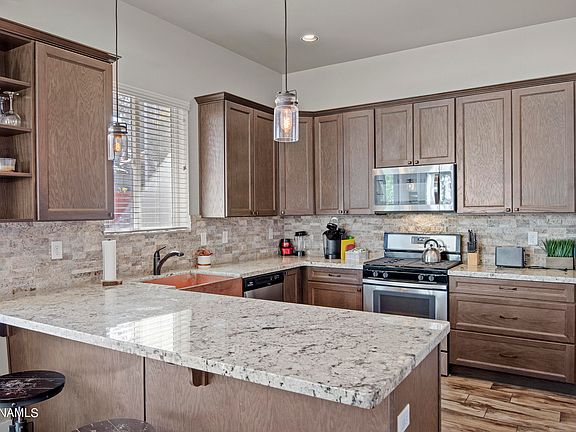 Amazing opportunity to purchase a very successful short-term rental less than 4 miles from Downtown Flagstaff!! Fully furnished, making it a perfect vacation home or investment. The interior of the home is a perfect mix of contemporary and warm earth tones. Stainless steel appliances, white granite countertops, and a large pantry highlight the kitchen. Wood-look tile for easy maintenance, and 9.5 foot ceilings construct the common area of the home. A large primary suite with walk-in closet, bonus loft space, and 2 guest bedrooms conclude the upper level. Additional features include: Central a/c, a fenced back yard that is professionally landscaped, featuring a covered paver patio and fire pit for winter gatherings! Limited showings available, schedule today!