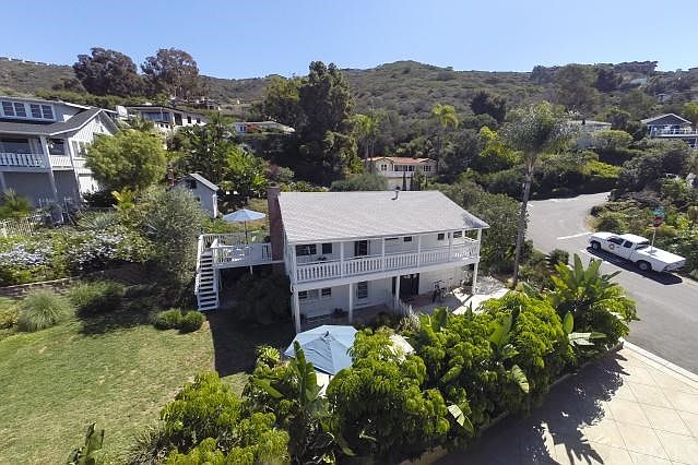 Quintessential Santa Barbara Styled cottage with panoramic Coastal views is nestled on a double lot just two blocks from picturesque Thousand Steps Beach. This sun-filled home offers an inviting floor plan featuring hardwood flooring, a fireplace, open beamed ceilings,an upgraded kitchen with a Viking range and master bath with a spa tub. Situated on a double lot with a flat grassy yard, this charming home is ideal for indoor and outdoor living. Watch the whales and sea lilfe migrate from the large front decks too. This spacious parcel includes Lots 056-142-57 AND 056-142-55.