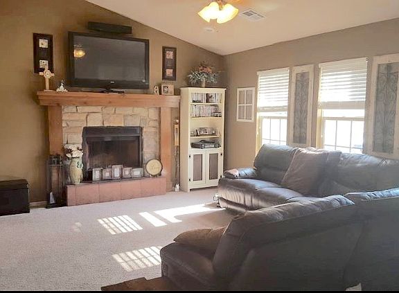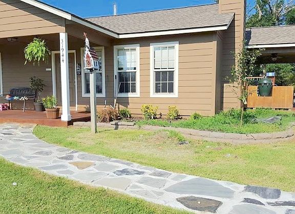 Great 1 story ranch style home with upgrades. Peaceful location close to lake, golf and the Grove. This home has it all with 3 bedrooms, 2 baths and a great open floor plan with vaulted ceilings. Kitchen has custom cabinets, granite counter tops with large island creating the perfect space perfect for entertaining. All of this siting on a large lot with covered porches to enjoy the outdoors. No HOA. This one is a must see and will not last long