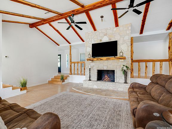 This stunning 5 bedroom, 2 1/2 bath home offers 3366 square feet of impressive living space...and storage! One customized feature that stands out in this home is the sleek quartz counter tops. Then, check out the new dishwasher and oven/stovetop. This home features multiple living and dining spaces indoors and out. Onto the full bathrooms, where both sport a new double vanity with new tub and shower tiles. The primary suit is downstairs. The space features an en-suite bath, office area, and a sitting area with a wood-burning fireplace and still has room for a California king bed. The second bedroom is located next to the primary bedroom. It is large enough to accommodate a California king bed. It may serve as an independent room or be incorporated into the makings of a primary wing on this side of the house. Sitting on 1.98 acres the outdoors space is just as impressive. The property features a deep diving pool, green space for future corn hole tournaments, animal sheds, and a spacious workshop that can accommodated two automobiles or other hobbies. Ideally located just off Casey Road and Highway 281. Not in a mandatory HOA. Listed below Market Appraisal.