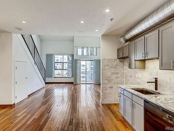 Don't miss out on this fully updated 1 bedroom, 1 bathroom lofted condo. Upon entering you are greeted with a view of floor to ceiling windows, a gorgeous white and gray updated kitchen and an overall open concept space. Just inside to the left is a fully updated spa bathroom with double sinks, walk in shower and large space. In the bathroom you have a stacked washer / dryer combo. The kitchen has new white marble tile backsplash, gray cabinets and modern granite countertops. The gas stove / oven adds high quality cooking . Yes, there is a Refrigerator! The living room is lofted, full bright windows and window coverings stay. These lofted ceilings create an expansive feeling throughout the condo.