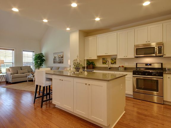 This upscale, low-maintenance villa at Preston Lake offers one level living -- with an open floor plan between the foyer, kitchen and living room, plus a main level master suite, powder room, laundry room and attached oversized (20' x 20') garage with room for storage. This expansive kitchen offers plenty of cabinet space, a gas range, stainless steel appliances and a large island with seating. The living room features a vaulted ceiling, an open stairwell system and plenty of natural light. The master suite includes a walk-in closet and spacious bathroom and upstairs you will find two more bedrooms and a full bathroom. All this in an upscale new community with a community clubhouse, playground, Village Green and more!