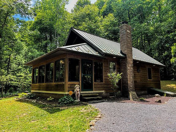 Private cabin retreat on nearly 3 acres of wooded ground features all glassed enclosed porch to view the natural beauty of the trees and pond. Take a step in the Great Room and let the stress of the day just melt away. First floor bedroom and bath, loft area with beds and basement area that can serve as an additional family room. PLUS the garage is finished into a large rec room with 1/2 bath, gas stove. Could easily be overflow for guests, in-laws or kids so they can have their privacy. Outdoor living with hot tub, flat area that was used as a volleyball court at one time AND the pond with a fire pit area where everyone can gather for their evening beverage and some S'mores! Truly a unique property very close to Seven Points and State Game Lands!