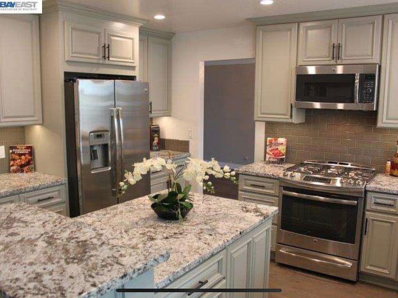 Move-in Ready. Like a 5-year old home. Functional layout with a full bedroom and bathroom on the first level. Master bed/bath/walk-in closet with additional attic storage upstairs. Master bedroom has a balcony overlooking the backyard. 2 other bedrooms share a bathroom upstairs. Remodeled in 2016 - Kitchen, Baths, Cabinets, Granite, Stainless Steel Appliances, LED Light Fixtures, Washer/Dryer, Water Heater, Furnace, A/C, Hardwood Floors, Carpet, Tile & More. Solar on roof (average bill $20), electric car charger in garage (220 volt), low--maintenance designed backyard (includes fruit trees). A sun room approx. 383 Sq.Ft. adds to the flexibility of the plan; sun room is not included in the house square footage. Great neighborhood, walking distance to elementary school, parks, groceries, daily amenities, and restaurants. Easy access to 580 and 680. Renter responsible for all utilities and landscape maintenance. No pets allowed. Pictures are from 2016 listing, except for the backyard (completed in 2020). No private pool on the property