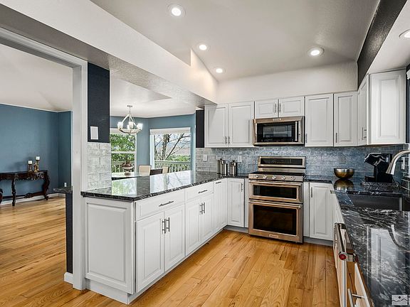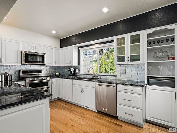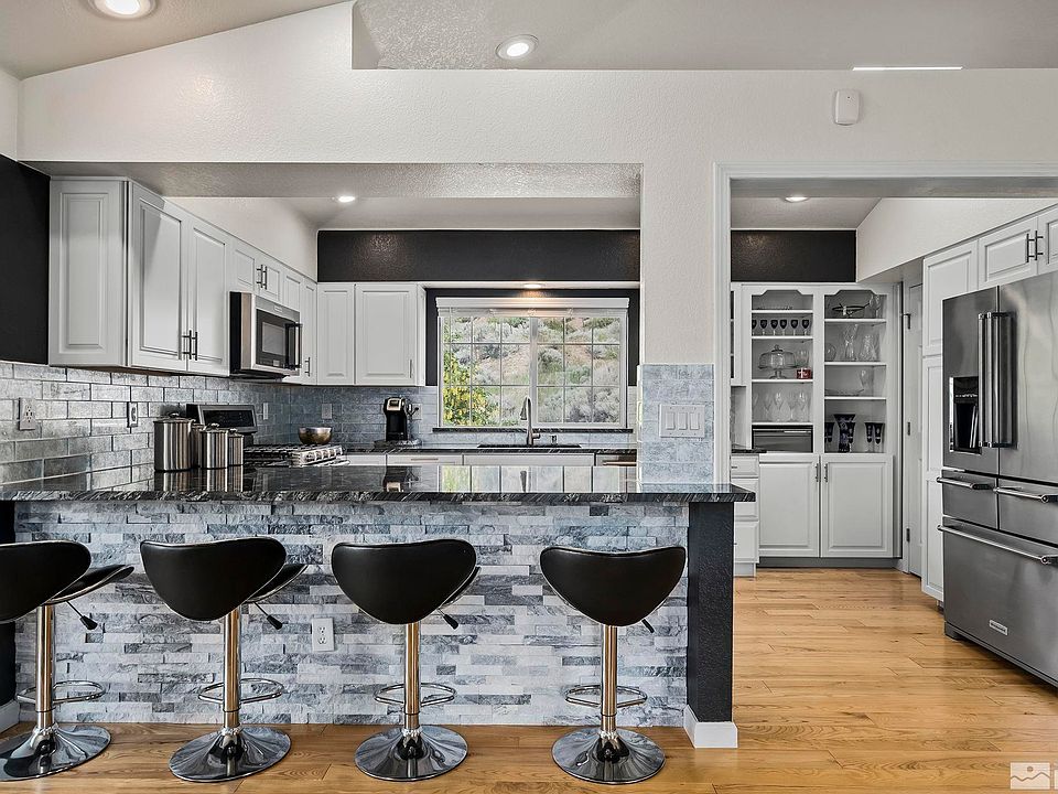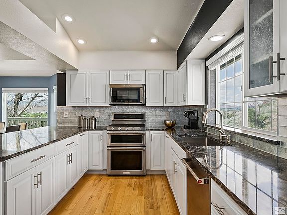 Million Dollar Views! Check this 4/3.5/3 Car Garage home on over 1/2 Acre. Features: Newly Modernize Kitchen w Luxurious Granite Counter tops, Farmhouse Sink, Stainless Kitchen Aide Appliances, Gas Stove, Breakfast Bar, Stunning Display Case, Soft Close Cabinets & Pantry. Dining Room has 180 Degree Mountain Window Views and a 2 Way Gas Fireplace. Living Room steps out to multi level deck with views at every vantage point., Master Bedroom has a wonderfully remodeled Master Bath w Marble Tile, flat bottom Ove Decors soaking tub and walk-in shower.. All Bathrooms have been modernized with their own charm. The Large Family Room steps out onto the Covered Patio. Exterior is Freshly Painted, Garage doors have been updated, comes with a Shed, & Dog Run. Home is at the end of the street which limits traffic and gives a Cul-De-Sac feel. Close to Parks, Shopping and the Truckee River. Come and tour this Reno Gem!