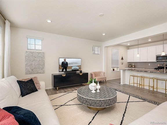 Welcome to your new dream home in beautiful Castle Rock. As you step inside, you'll immediately be impressed by the open and welcoming floor plan, complete with hardwood floors and high ceilings. The gourmet kitchen features stainless appliances, granite countertops, and plenty of storage space, making it the perfect place to cook and entertain. The adjoining dining area is spacious and ideal for hosting large gatherings. Rounding out the main floor is a full bath and bedroom that can also be used as a home office. Upstairs, the primary suite is a true retreat, with a luxurious ensuite bathroom and a walk-in closet. The two additional bedrooms are well-sized, and the loft provides the perfect space for additional living area. The laundry room is conveniently located upstairs, making laundry day a breeze. The attached 2 car garage provides plenty of room for parking and storage. Outside, the massive lot offers endless possibilities for outdoor entertainment, including a beautifully stamped concrete patio perfect for summer barbecues and gatherings. The unfinished basement offers you endless opportunity to expand the living space in the home. Conveniently located across the street from a park and playground. Just a short drive away from shopping, restaurants, and the highway. Don't miss the opportunity to call this home yours!