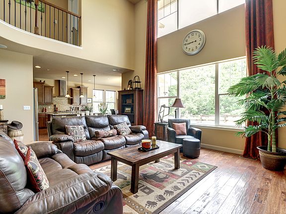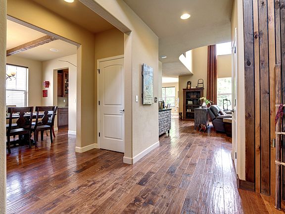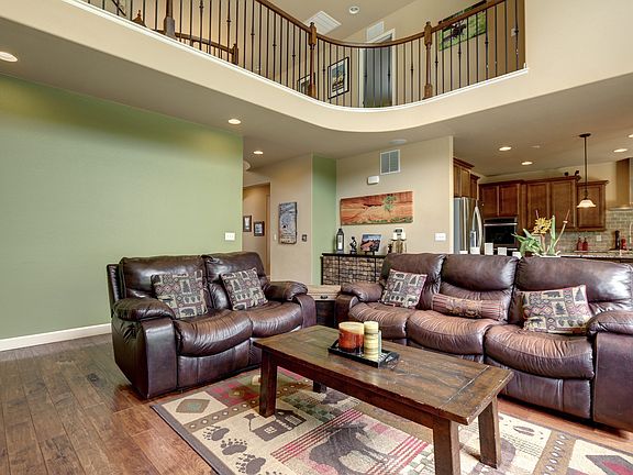 This impressive home in The Meadows will take your breath away. With countless upgrades, this custom home is loaded with features. From the timber ceiling beams to the hand scraped hardwood floors, this home is stunning from top to bottom. You'll love cooking meals in your gourmet kitchen with granite slab counters, gas range, roll-out shelving, and oversized sink. Entertain friends and family in your unique home theater room, complete with 135" projector, surround sound speakers, wet bar, and custom barn doors! The lower level also includes a home gym and bedroom. At the end of the day you can retreat to your master bedroom with tray coffered ceilings and spacious 5-piece bath. The beautiful oversized lot boasts a custom river bed and several trees. It also backs to Ridgeline Open Space, which includes 25+ miles of hiking trails and connects to expansive Philip Miller park. The Meadows also offers a variety of amenities. This location can't be beat! Hurry - this home won't last long!