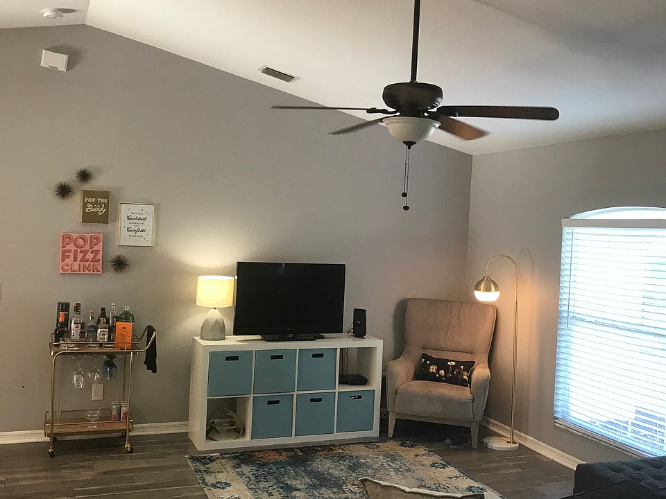 Well Maintained Home with 3 bedrooms, 2 baths, and 2 car garage located on an oversized corner lot (approximately 14,146 sq.ft.) Large entryway opens up to the living/dining and kitchen area. This open floor plan is perfect for entertaining friends and family. Kitchen boasts granite counters, ample cabinets, plenty of counter space, and all appliances. Master suite has walk in closet and walk in shower. Both baths have granite counters. Flooring consists of laminate in the main living areas and tile in the bathrooms. There are three sets of sliders off the dining room, a guest bedroom and master bedroom. Enjoy the outdoor privacy from your screened, tiled lanai. Per seller/County records A/C (2015).