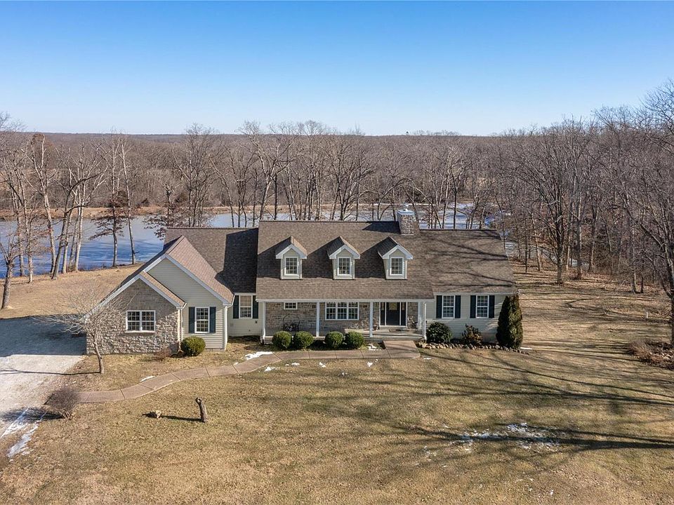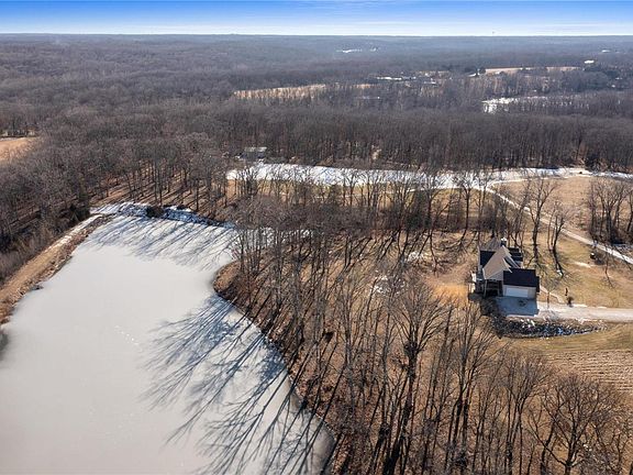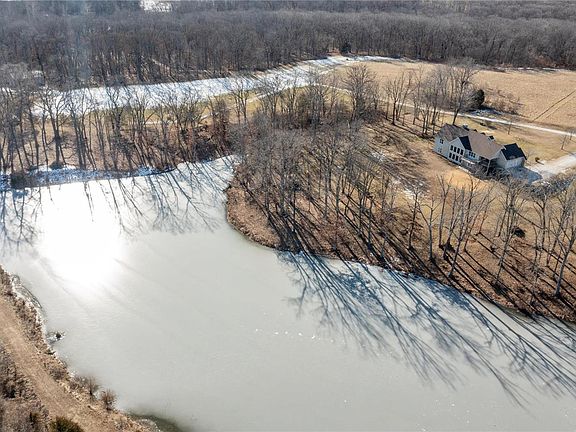 Country Roads, Take Me Home…to a custom-built 3bed/2.5bath atrium ranch cradled on 8 glorious acres with a serene 3.5 acre lake creating the most spectacular setting! If you long for privacy galore, you hit the jackpot. It’s the perfect marriage of land and home! Main floor is overflowing with natural light through atrium windows & skylights. The open floor plan is complemented by soaring vaults, wood floors & fresh paint. Kitchen features updated appliances, stunning cabinets & opens to dining area fit for 2 or 12. French doors from dining area to a party perfect deck, ideal for the family BBQs. Vaulted main floor master suite with large WIC. Powder room & laundry complete the main floor. Walk-out LL features 2 BRs, full bath, family room with walk-behind bar, bonus room perfect for billiards with French door access to patio. New Roof Dec 2021. The beautiful drive leads you to secluded splendor, where you will escape to comfort beyond your wildest dreams! Make this home YOUR HAVEN!