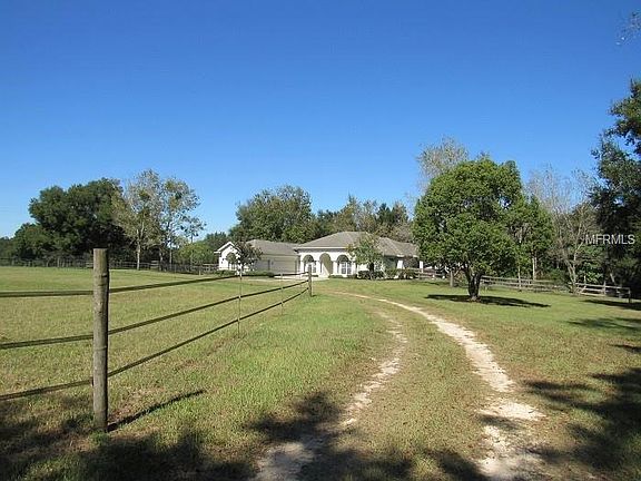 Dazzling contemporary equestrian home on 5.96 acres in beautiful Dade City. This 4 bedroom,2 bath,3 car garage home was built in 2001. Entering the double beveled glass entry doors, you will notice the open floor plan with high ceilings, beautiful ceramic tile, and a stunning view out the patio glass. This home offers a Living room and Family room floor plan. The superlative kitchen has granite counter tops, a center island, recessed lighting and under cabinet lighting. The master bedroom features tray ceilings with crown moldings and plenty of space for a grown up retreat. This split floor plan home also has a large inside utility room with laundry sink and plenty of storage cabinets. The home is equipped with a 22Kw standby whole house generator. The property boasts a 24x36 three stall barn and tack room and storage room with three turn out paddocks. Barn is situated to be expanded if needed. No climb fence encloses the equine part of the property. The back part of the property is wooded for privacy. There is also a trail that leads to a spring fed creek. Beautiful scenic landscape, close to major roads that connect you to shopping, entertainment, hospitals & beaches, yet far enough away to enjoy the private Dade City countryside. Less than 10 minutes to I-75. Pristine properties with acreage like this don't come around very often. AHS Home warranty included.