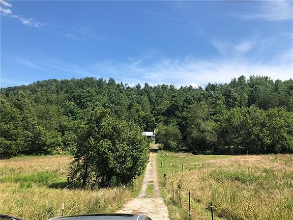 34.5 acres of pasture and wooded areas with beautiful Blue Creek on the property and 3 springs/creeks on the mountain. Two pastures fenced ready for horses or livestock now! House has been rewired and new plumbing/deep water well. House will need work but livable with lovely building sites on property. House has no heating and air conditioning.