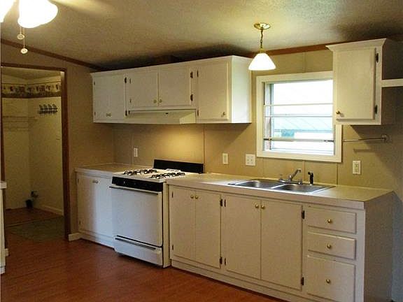 Tons of living space at this price! 3-bedroom, 2-bath manufactured ranch deeded as real estate. 1,620 sq. ft of living space. Large eat-in kitchen with breakfast bar, open dining/family room w/ newer laminate flooring. Nice sized living room. Master suite with large walk-in closet and bath with garden tub and full shower. Split floor plan with 2-beds and full bath on the other side of the house. Concrete crawlspace, rear covered deck, front deck, city water and storage shed. The owner wants this sold..... bring offers. Previously rented for $750 per month. *** No land contracts, rent to own or rental inquiries please***