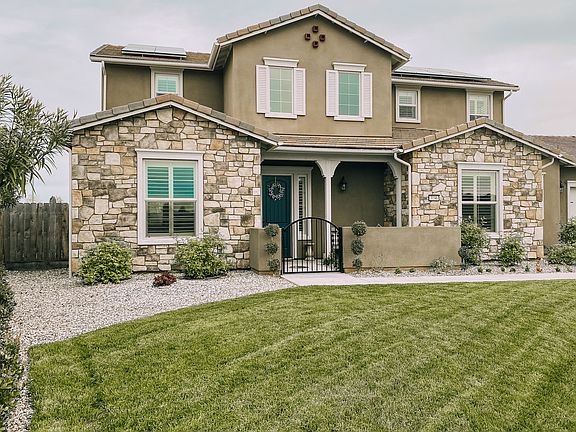 This is one of the most desired locations in Clovis with an incredible neighborhood and very family friendly. The Marquise Collection of homes is the upgraded homes in this Diamond Crest community which a lot of the standard features are upgrades to most other homes. Outside: Solar, solar, solar. A huge benefit to help offset your power bill. In the back yard is an huge space for entertaining. Over 125k has been spent in creating an easily maintaining backyard and entertainment for every age. On one side, you have a in-ground trampoline surrounded by artificial grass, then a large basketball area, with a high-end basketball hoop and night light that is controlled through your phone. Next to the basketball area is an open space of artificial grass to play on and area for entertaining. On the other side is a custom built pool and spa area, with a built in slide. All water features, slide, lighting, spa temperature, and custom lighting to light up the trees and shrubbery. Main Floor: On the main level is an open floor plan. As you come into the home, there is a large family room with an incredible custom built entertainment center area that surrounds the fireplace and open to large kitchen and nook area. The kitchen includes lots of cabinet space, custom wood work, upgraded lighting, white quartz counter-top with plenty of space for an eating space. To the right of the family room, there is a game room with custom built barn doors and 1/2 bath in the hallway. There is one large bedroom, walk-in closet, and separate full bath. Second Floor: On the second level, there are 4 total rooms which also includes the Master bedroom and bathroom. On one side of the upstairs includes 2 large bedrooms and a full bath. On the other side includes the 3rd room along with the spacious master bedroom. In the master includes a large bath area and a spacious walk in closet. Added Features: The house comes with a custom alarm system, all windows and doors have been built in. Partial garage conversion includes mother in law suite (unpermitted and not included in house sqft).