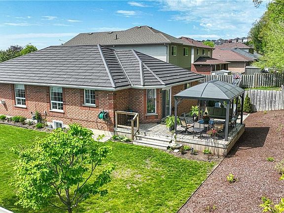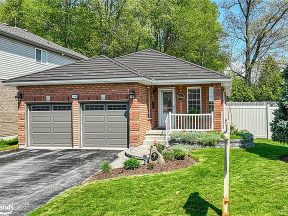 Meticulously maintained & beautifully decorated 2+1 Bdrm. Brick bungalow in highly sought-after Westridge area of Orillia. As you step onto the covered front porch, you'll immediately sense the care & attention to detail that defines this home. Foyer w/direct access to Dble garage w/auto door openers & storage mezzanine. Tastefully appointed 2pc powder rm adds convenience along w/main flr, laundry rm w/laundry tub & cabinetry. The heart of the home is the formal living room, boasting a cozy gas FP, gleaming hardwood floors, & abundance of natural light. Bright & airy custom Kitchen w/plenty of storage & soft-close drawers. Step out onto the deck w/gazebo overlooking fully fenced yard w/lovely perennial gardens. Main flr also features a spacious 2nd Bdrm. w/closet organizer & a 3-piece bathroom plumbed in for a separate tub. Descend to the mostly finished basement, where you'll find a bright 3rd Bdrm. w/3 closets, 4pc. Bath w/shower & dble. vanity, office nook, & Family rm w/wet bar & gas FP. Conveniently located close to all amenities, incl. bus stop,shopping,Rec.center,movie theater & university, this home offers the perfect blend of comfort & convenience. Backing onto Westridge Park forest nature trail leading to Clayt French Park. Many updates add to the appeal of this home, including a new gas furnace (2021), composite fence (2020), kitchen w/appliances (2018),metal roof (2019) w/snow stops & gutter covers, central air (2017), freshly painted walls & updated flooring.