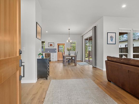 Beautiful, almost new, builder's own home in popular westside neighborhood, Shevlin Ridge. This single level modern prairie style home sits on a large, flat, .24 acre corner lot. Large windows throughout make this home light, bright and inviting. Features an open, great room floor plan with large kitchen, professional grade stainless steel appliances including refrigerator, double door pantry, quartz countertops. Wood floors in living room, dining, kitchen and hallways. Dining area opens to a large covered paver patio that is both private and sheltered. Large 2nd and 3rd bedrooms with walk-in closets. Large Primary Bedroom suite with huge walk-in closet, dual vanity, and large tiled shower. Three car garage with plenty of additional space for shop or storage. Close to the trails and open areas of Shevlin Park. No HOA fees.