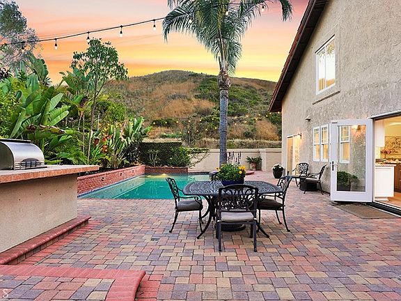 Welcome to this beautifully upgraded four-bedroom, three-bath home nestled on a spacious 10,032 sq ft lot in the coveted Los Corrales community of San Juan Capistrano. With gorgeous views of the surrounding hills and horse trails, this home offers the perfect blend of tranquility, functionality, and SoCal lifestyle. Inside, you’ll find two spacious living rooms, vaulted ceilings, and an open-concept layout that flows effortlessly throughout. The remodeled kitchen is a chef’s dream, featuring a large center island, farmhouse sink overlooking the backyard, custom cabinetry, and a six-burner range with hood. The adjacent family room is warmed by a cozy fireplace and opens to the backyard through a stunning wall of bi-fold doors, inviting indoor-outdoor living. Downstairs includes a formal living and dining area with a fireplace, beautiful stained glass window, a guest bedroom with full bath and walk-in closet, and a dedicated laundry room. Upstairs, the primary suite is a true retreat with vaulted ceilings, a two-way electric fireplace, a remodeled en-suite bath with double vanities, soaking tub, skylight, and separate shower. Step out onto the oversized balcony to take in breathtaking views. The two additional upstairs bedrooms are generously sized, each offering a gorgeous view of the backyard and pool. Upstairs hall bathroom has double vanity. Enjoy year-round entertaining in the expansive backyard, complete with a sparkling pool and spa, stand-alone sauna, grassy area, multiple seating zones, and built-in BBQ. Mature fruit trees—including orange, grapefruit, lemon, and pomegranate—add a lush, vibrant touch. Ideally located near San Juan’s charming Historic Downtown, local beaches, equestrian and hiking trails, and Dana Point Harbor—this is the home that truly has it all.