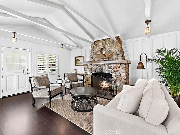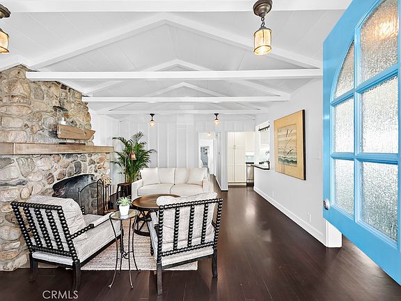 Welcome home through the front Dutch Door into the living room exuding vintage charm including original beamed ceilings, lantern fixtures and the natural rock fireplace. The adjacent dining room is large enough for 8-10 seating with nice Catalina Island views rests next to the Gourmet Kitchen w/Viking and Kitchen Aid appliances. Craftsmaid cabinetry all have pull out drawers/shelves for convenient access. The Farmhouse apron sink, and “insta hot” water faucet further compliment the vintage charm of the cottage.