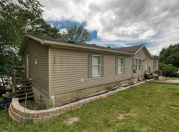 Manufactured home on permanent foundation full unfinished basement, house sits on three large lots. 3 bedroom 2 bath ranch on lake frontage at Crystal Lakes. Vinyl siding, large deck, 2 boat docks, large fire pit, small boat house, new central heat and air installed in 2016, large living room for entertaining, Needs a little TLC. Sold As is for sale by owner 816 446 5000