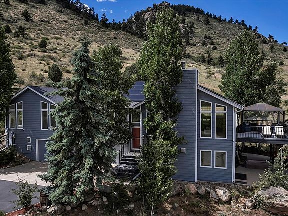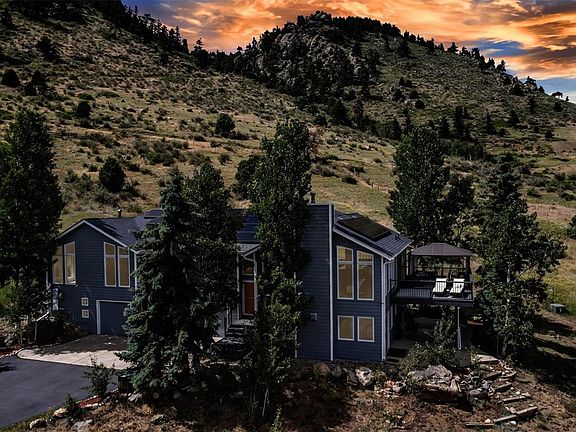 ** ACCEPTING BACK UP OFFERS **Discover the perfect balance of peaceful mountain living and modern accessibility in Golden, where this exceptional home sits on a fully fenced lot with Jefferson County open space as your backyard neighbor, offering unparalleled privacy just 17 minutes from downtown Golden and 15 minutes to Black Hawk.. The sellers have invested $60,000 in premium solar panels, reducing monthly electricity costs to just $30/month, while their own well with a new well pump, a top-of-the-line water filtration system, and a top-tier softening system provides true self-sufficiency in this mountain retreat. This thoughtfully designed 4-bed, 4-bath home features a vaulted primary suite with luxurious 5-piece bath, electric fireplace, zero-entry shower, and skylight, plus an attached mother-in-law suite with kitchen and skylight that creates excellent potential for short-term rental income or multi-generational living. Smart home technology throughout includes storm tracking capabilities and weather monitoring tablets, keeping you informed and prepared in Colorado's changing mountain climate. Whole-house air conditioning and multiple heating options—including double-sided gas fireplaces and a wood-burning heater capable of warming the entire home—ensure year-round comfort, while outdoor adventures await at the nearby Centennial Cone Park West Trailhead for hiking and horseback riding, or on your private horse trail right behind the fence. The lower level offers two additional bedrooms, full tiled bath, and gas fireplace, while the main floor features a theater room, and the 3-car garage provides abundant storage enhanced by practical conveniences like nearby bus service, fire department, and easy Highway 93 access keeping Denver's opportunities within reach—truly representing an increasingly rare opportunity to own Colorado's mountain lifestyle with modern conveniences and energy efficiency built right in.
