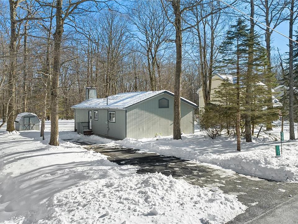 Come tour this recently refreshed 3-bedroom ranch home nestled in the heart of the Poconos! This property is conveniently located close to popular attractions such as Kalahari Waterpark, Camelback Mountain Resort, Mount Airy Casino, Crossings Premium Outlets, and more! Step inside to admire the open-concept floor plan featuring vaulted ceilings in the living room which creates a bright and airy atmosphere. Cozy up by the brick fireplace on chilly winter evenings! Convenient 1st floor laundry. All you need to do is move in. **BRAND NEW ROOF (2022) and BRAND NEW LVP FLOORING THROUGHOUT (2022)** No neighbors out back, so you'll love the treelined view. The utility shed provides ample storage space for all your outdoor equipment. Whether you're seeking an investment opportunity or a permanent residence, this property offers endless possibilities. Airbnb/short-term rental approved. Don't miss your chance to own this charming Poconos retreat. Schedule your showing today!