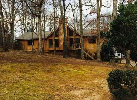 Wonderfully private, renovated retreat in top East Cobb location. Dramatic vaulted Great Room with stone fireplace, Private Master suite, split bedroom ranch plan. New granite counters in Kitchen and bathroom vanities. Level driveway leads to drive under garage/parking/turn around. New back deck sliding door from kitchen, while dining room overlooks inground pool, tucked into the sloped backyard, Oversize garage has space for workshop or storage, with more unfinished basement space for more creative opportunities. Must See!