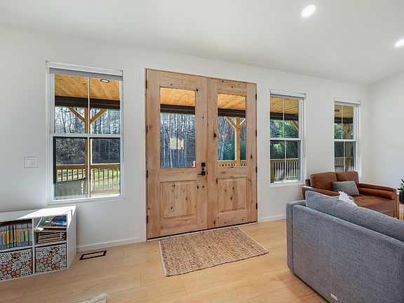 Whether you're naughty or nice, you're going to LOVE this home! This stunning modern ranch-style home, where simplicity meets elegance is just under 2,000 sq. ft on ONE level, with an open & airy floor plan. Boasting 9-foot ceilings that flood the home with beautiful, natural light. Every detail has been thoughtfully designed, from the minimalist aesthetic to the elegant finishes throughout. 3br/2ba, w/the large Primary bedroom & luxurious bath on one side & 2 large bedrooms & full bath on the other, ensures privacy. Enjoy the ease of main-level living with a seamless flow between the living, dining, and kitchen areas, perfect for both relaxation and entertaining. Step outside to the covered front porch, offering a cozy oasis for morning coffee while listening to the creek, yet large enough to sit all your friends & family. This home is a true masterpiece, offering beauty & functionality in a true open-concept design. 2 acres of privacy to play & explore!