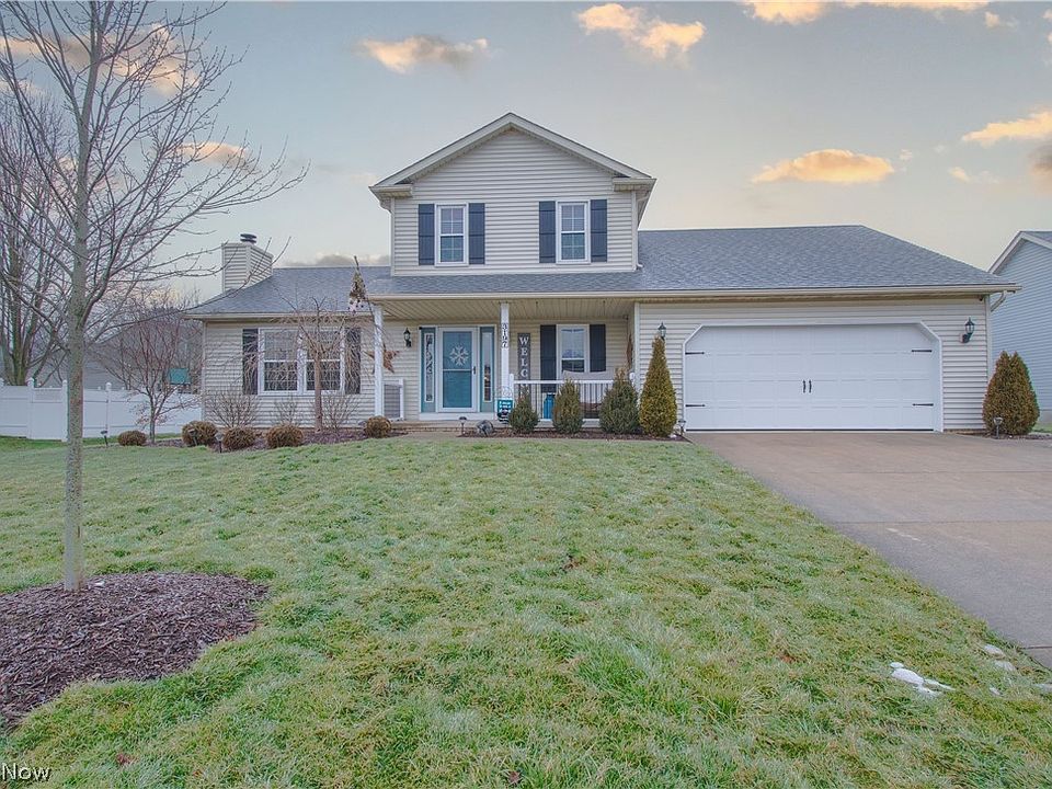 This fantastic home is located in the desirable Greentree neighborhood in North Canton Schools! The welcoming front porch invites you into this beautifully updated open floor plan home with over 2,500 sq ft of living space. The vaulted ceiling great room w a beautiful hearth brick fireplace (white mantel) and eat-in kitchen centrally located make this home perfect for entertaining. The kitchen has been upgraded w stainless appliances, white cabinets accented w a gorgeous ceramic tile backsplash, Corian countertops, a breakfast bar, a pantry, and a dinette area w sliding doors leading to the carefree composite deck. The 1st-floor owner's bedroom is complete w a private bathroom w a soaker tub, walk-in shower, and a walk-in closet. A half bath and laundry are also conveniently located on the main floor. Upstairs are two bedrooms & a shared bath w a skylight. Additional 768 sq ft of finished living space in the basement offers a rec room and a bonus room (possibly 4th bedroom/office/or pl