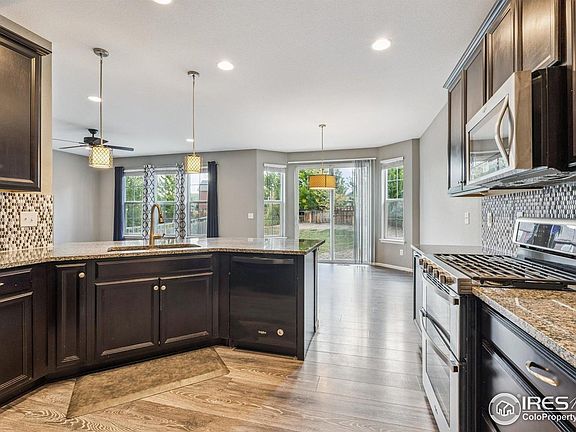 Welcome home to contemporary living on a large lot in the family-friendly community of Sweetgrass; this is 3197 Raintree Lane. Beautiful LVP flooring, grand 9' ceilings, fresh paint, and abundant natural light greet you upon entry and unfold to over 2,500+ sqft of functional living and entertaining space. The living and dining areas seamlessly connect to the well-appointed kitchen featuring granite counters, 42" espresso cabinetry with nickel hardware, a stainless steel appliance package, tile backsplash, and a walk-in pantry. Steps off the kitchen is the sizeable family room, the ideal spot for family movie nights or watching the big game. Step outside to a paver patio with a starlight umbrella for maximum summer shade while overlooking one of the largest lots in the community. Upstairs, new carpet (2025) unfolds into the private living quarters, comprised of two generously sized secondary bedrooms, a full bath, laundry, a bonus loft - perfect for a playroom, game room, or home gym, and the primary suite. This spacious retreat features a large walk-in closet and an upgraded 5-piece bath with a glass walk-in shower. Additional features of this turnkey residence include a main-floor home office, custom window treatments throughout, a 50-gal water heater, and an unfinished plumbed basement for future expansion. The community outdoor pool, parks, and miles of trails are just steps from your front door, and shopping, dining, and major roadways are only minutes away. Do not miss your opportunity to experience this contemporary home in an ideal location; book your showing today!