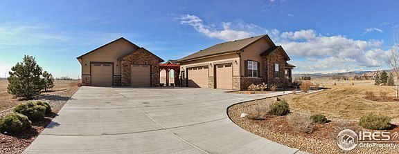 Beautiful custom home W/ 30x34 ft shop, situated on 2 acres in the desirable Preserve at Lonetree neighborhood. Enjoy stunning sunsets over the Twin Peaks and the Front Range while relaxing in the blue tooth-equipped hot tub on the patio. 9 foot ceilings throughout. Gourmet kitchen with breakfast area seating and large island, 6 burner gas range, high end stainless steel appliances, and a large walk in pantry. Finished basement includes wet bar and entertainment area. Free Ditch water !